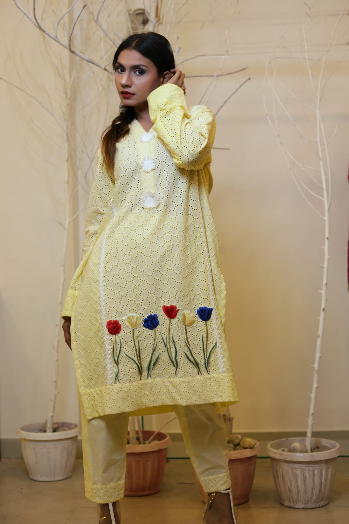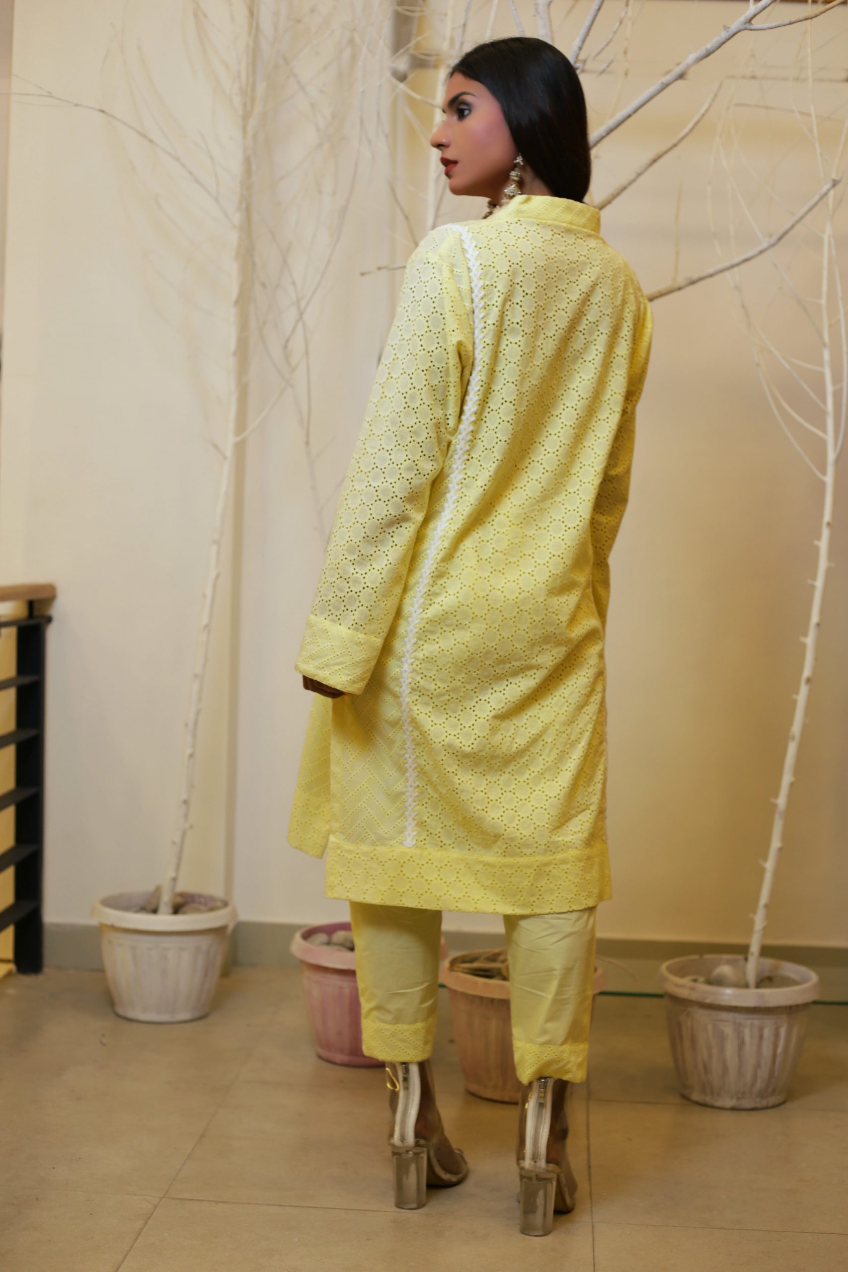 This is easy breezy kurta set to have for a casual day about town. A part of our super fresh collection, it is crafted out of Cotton fabric. Pair this with the dyed printed pants and printed dupatta for the perfect summer daywear.