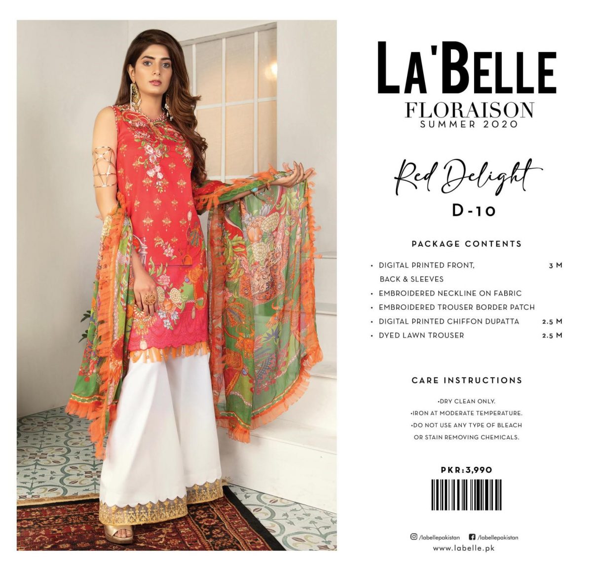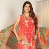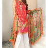 3Pc. With our fiery red colour, beat the summer heat and take pride in this classic tropical mix. Comes with a printed dupatta with indigenous motifs.