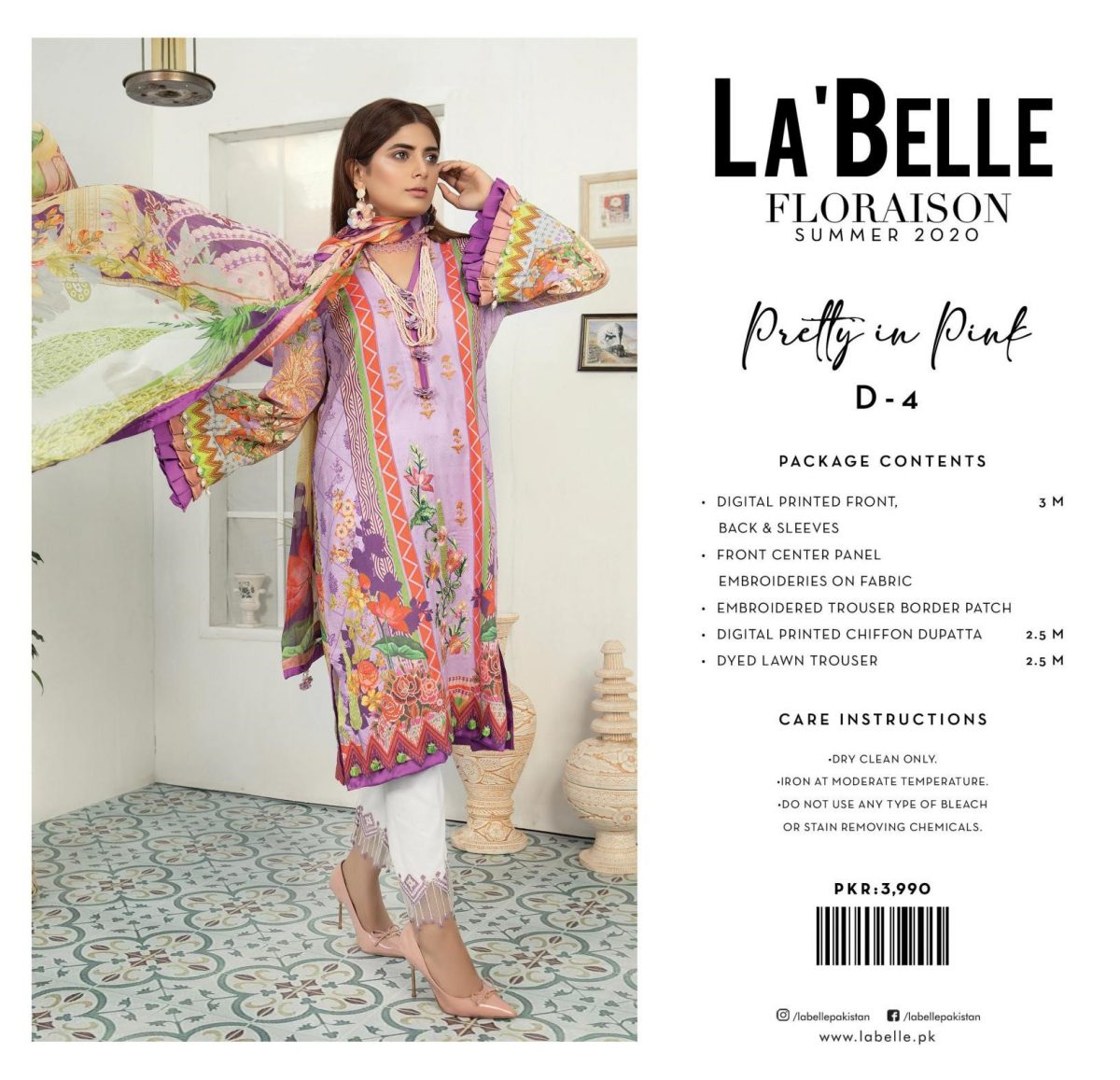 3Pc. An elegant statement lawn shirt with a digitally printed dupatta gives you the perfect tropical vibes blended in shades of pink and intricate embroidery, that will make a summer statement.
