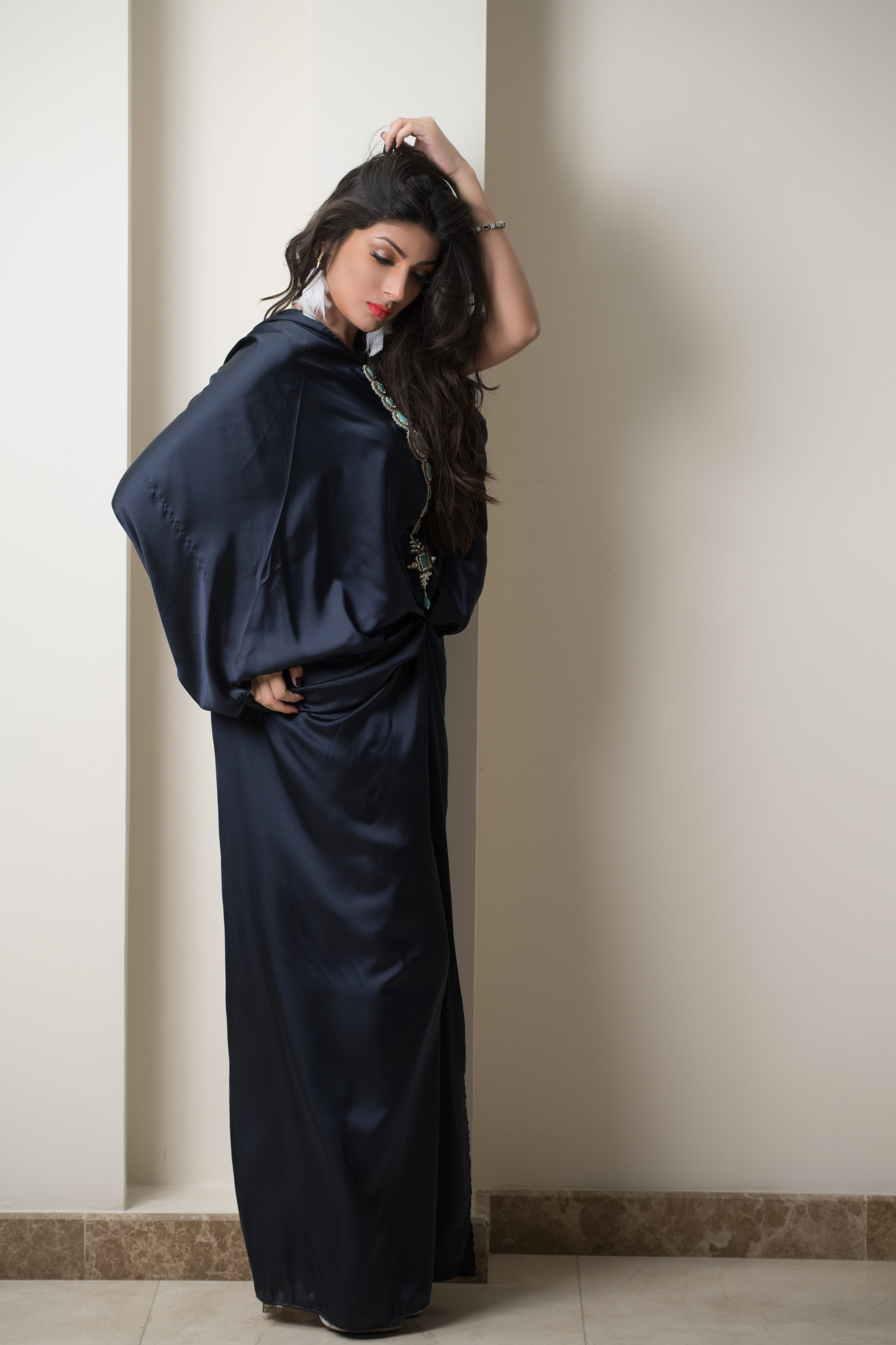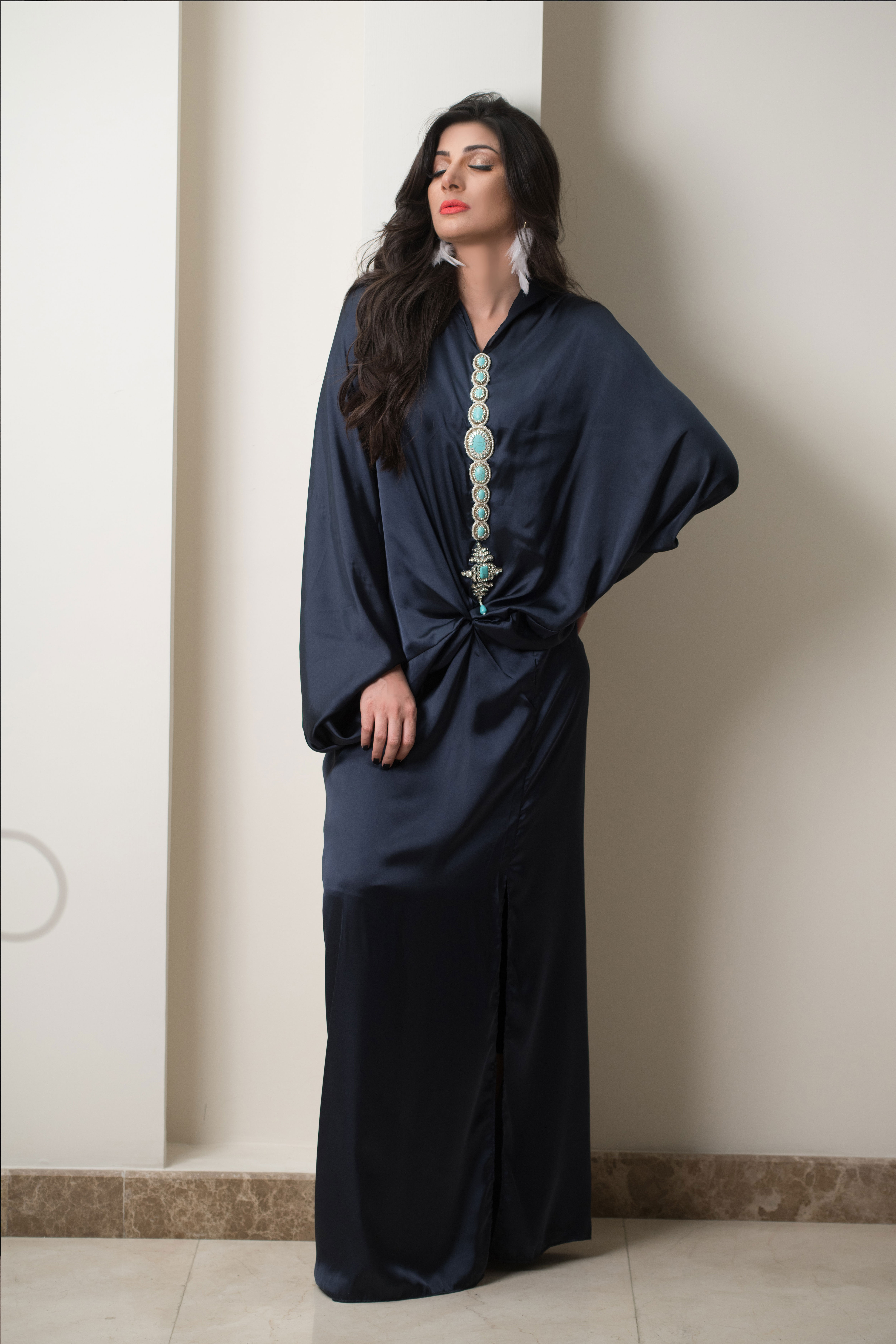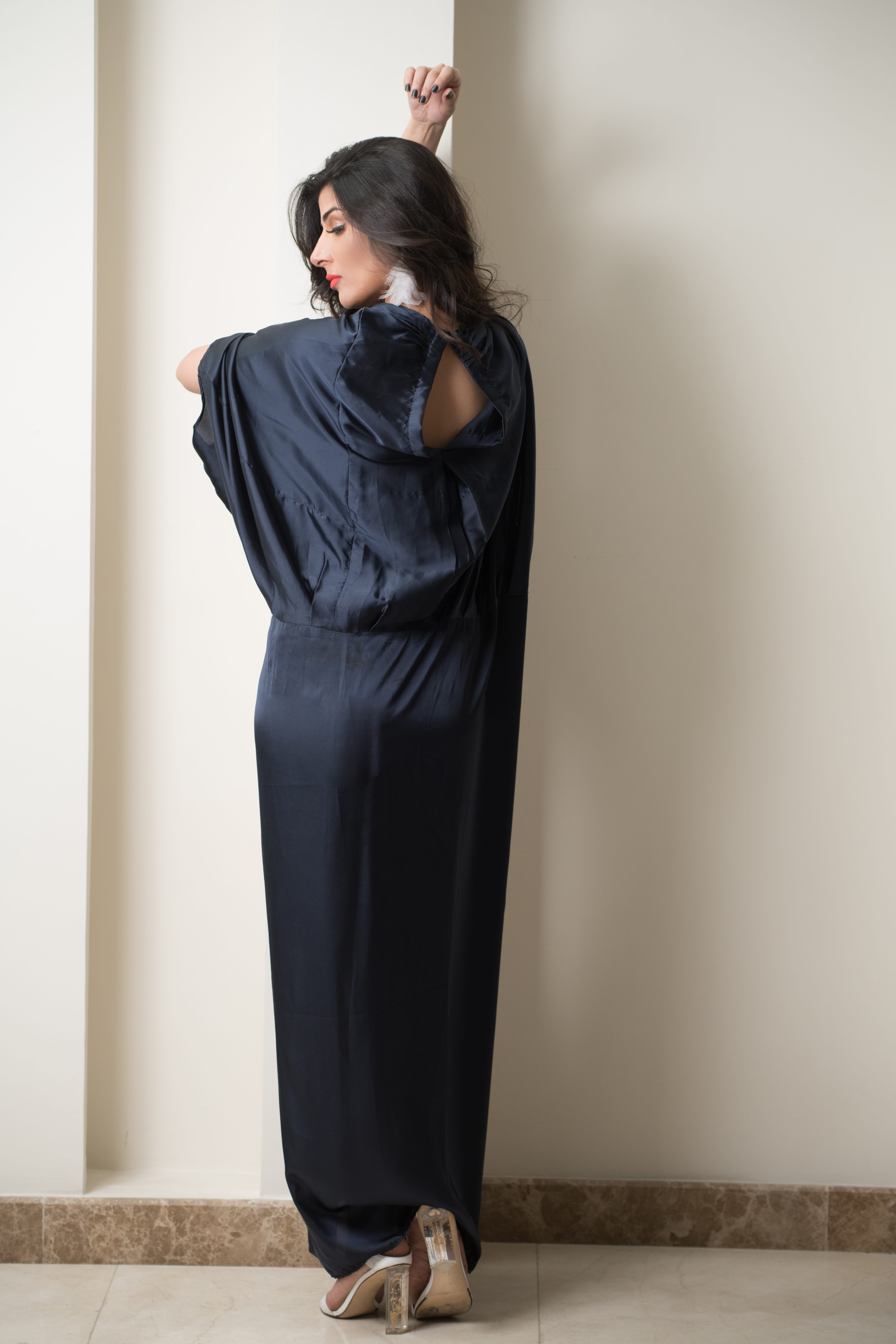 Denim colored silk maxi from summer’19 collection by KHAJ K